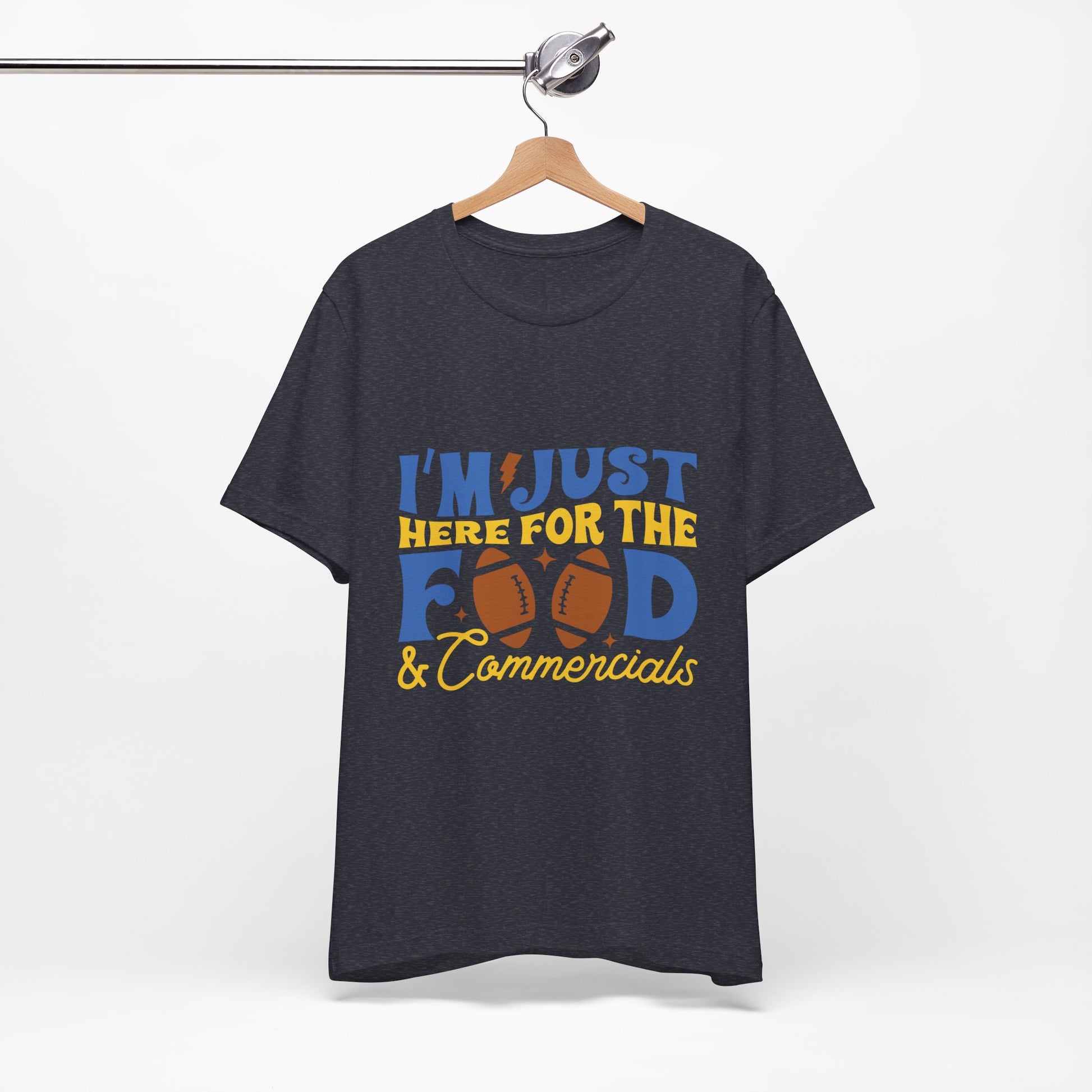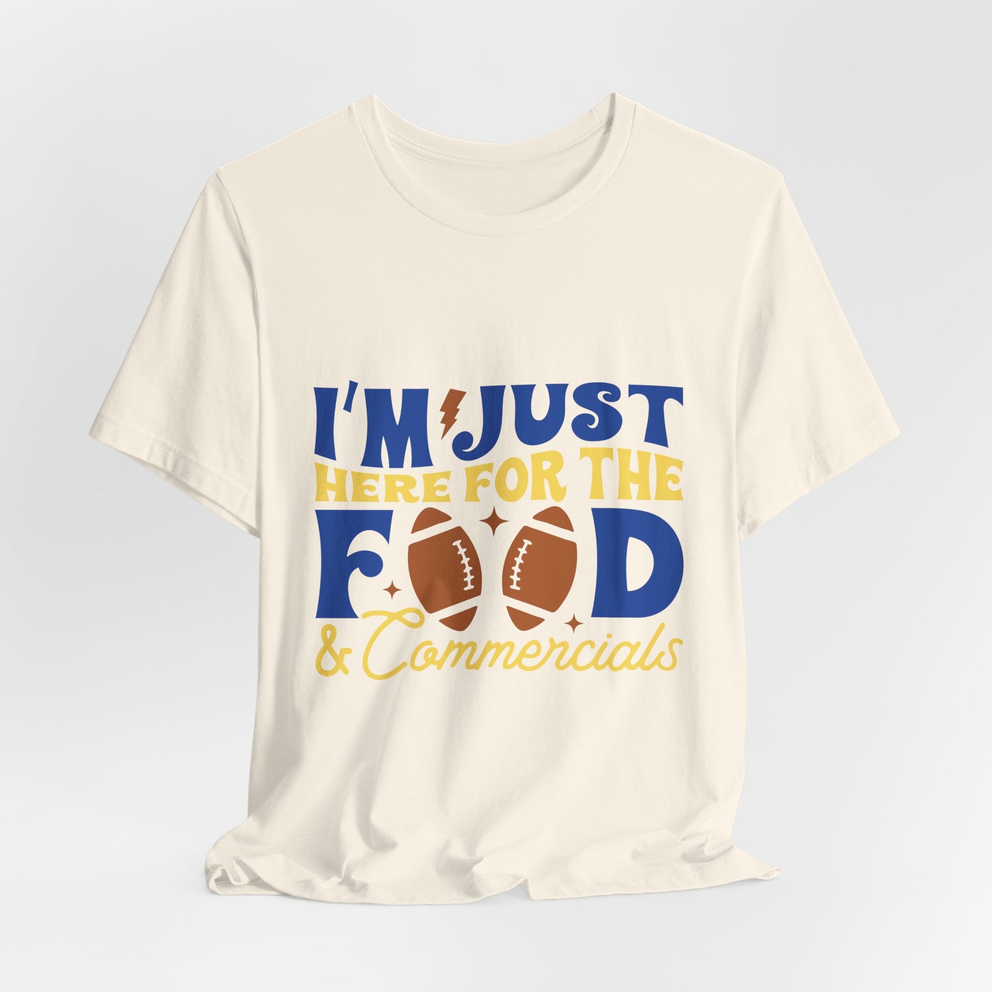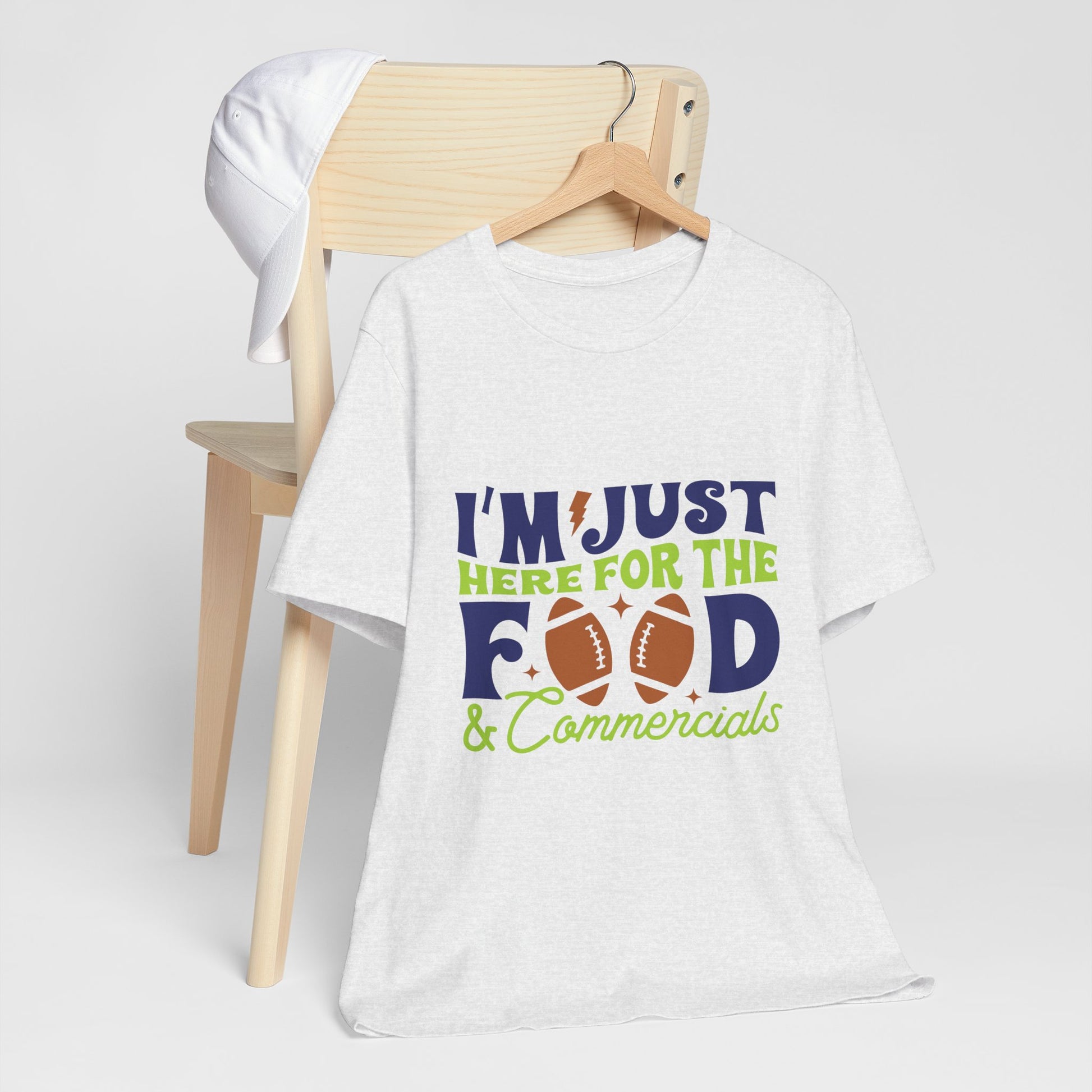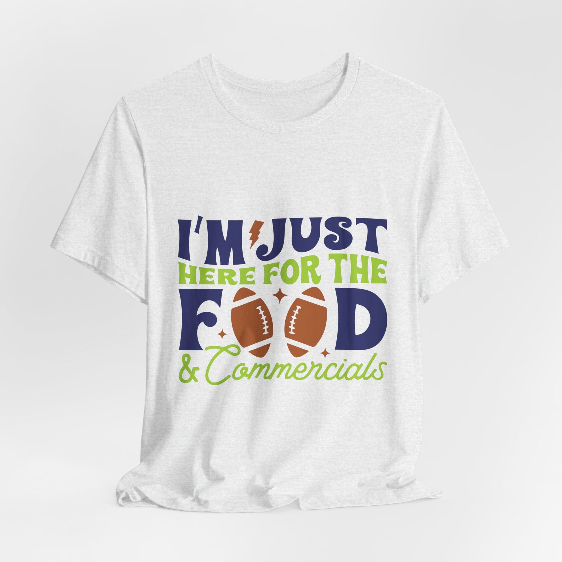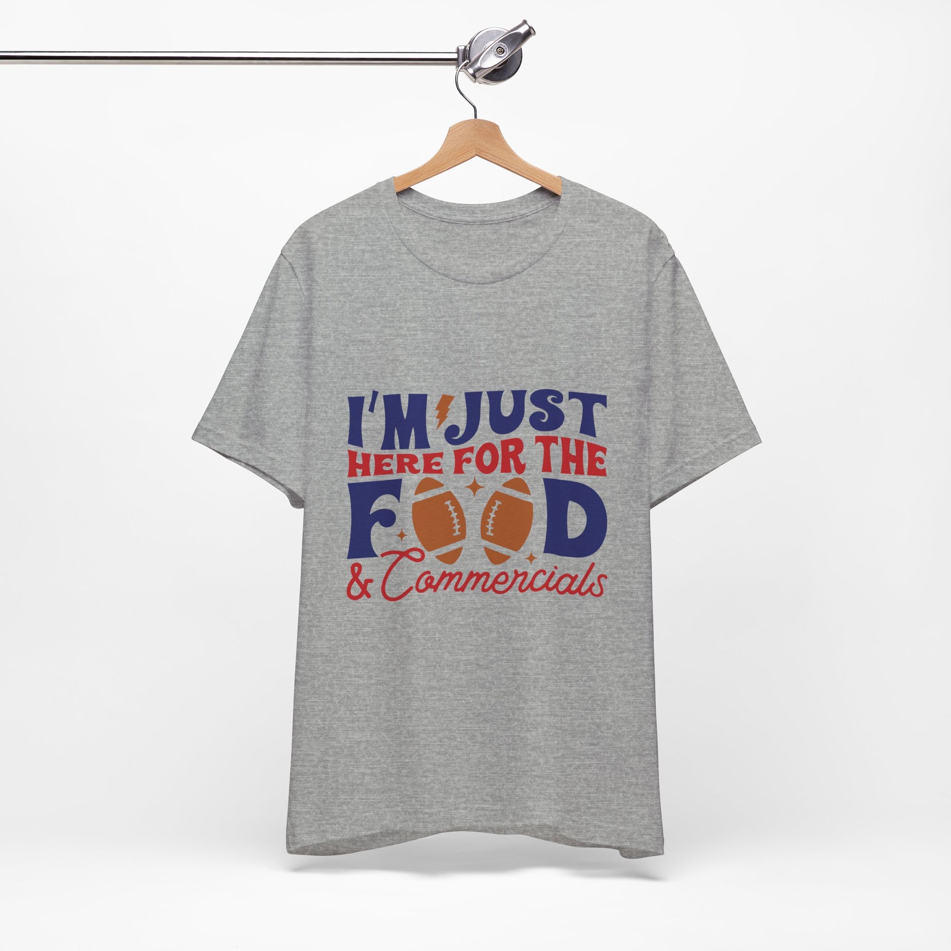 Lightweight, breathable, and built for game-day comfort—this jersey tee speaks to anyone who shows up for the snacks and halftime laughs as much as the kickoff. The playful “I’m just here for the food & commercials” design uses bold, sporty lettering and a football motif to keep the vibe casual and fun. Wear it to backyard watch parties, tailgates, or cozy living-room screenings; it layers easily under a flannel or pairs with jeans and a cap for a relaxed, effortless look. The soft Airlume combed and ring-spun cotton feels gentle on the skin and the retail fit keeps the silhouette neat without being stiff. Thoughtfully made with stable side seams, a ribbed knit collar, and shoulder tape for lasting shape, this tee looks fresh wash after wash. For people who cheer from the couch or run the grill at halftime, this shirt lets your sense of humor do the talking.