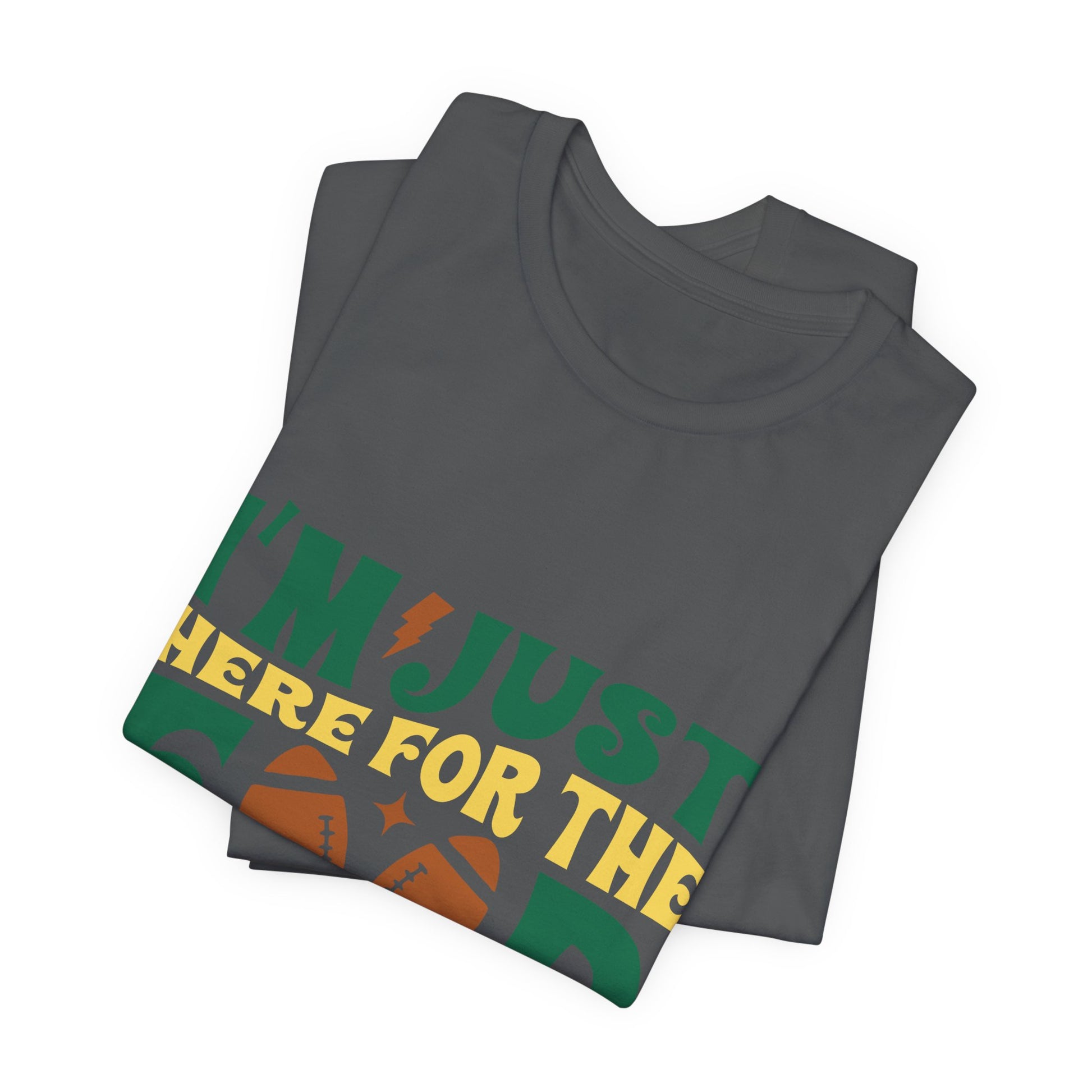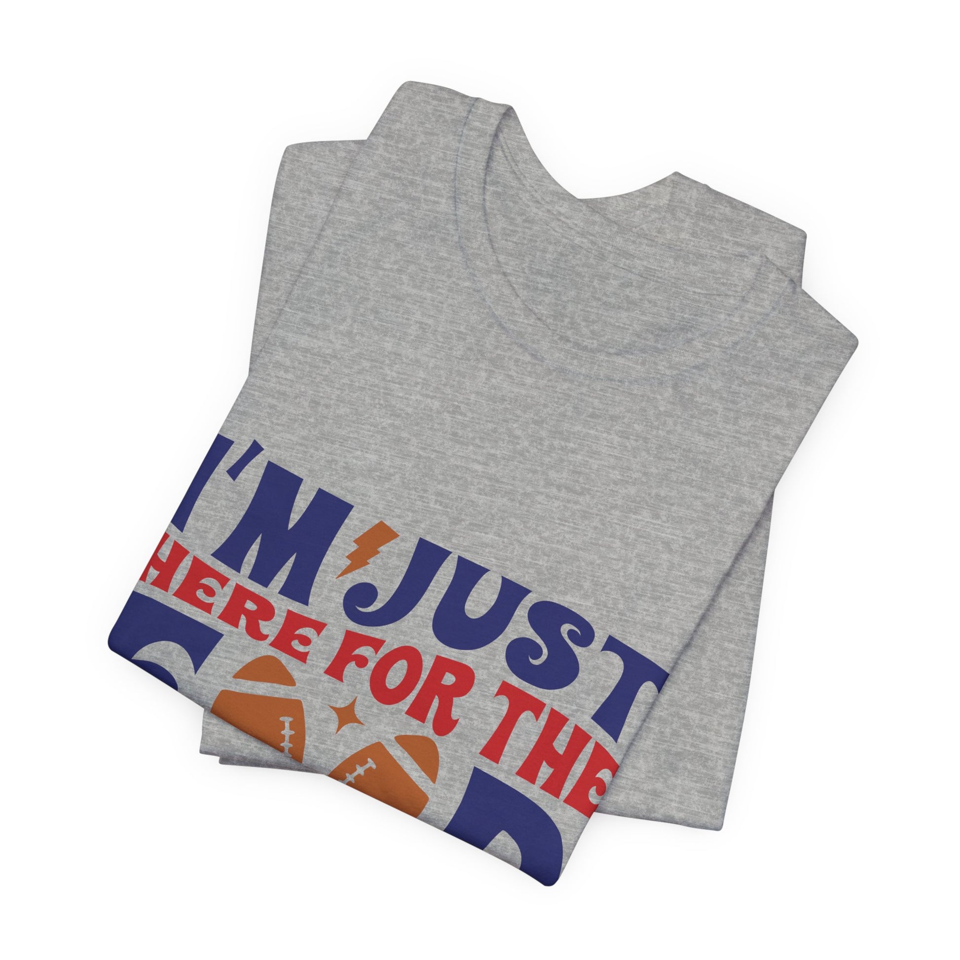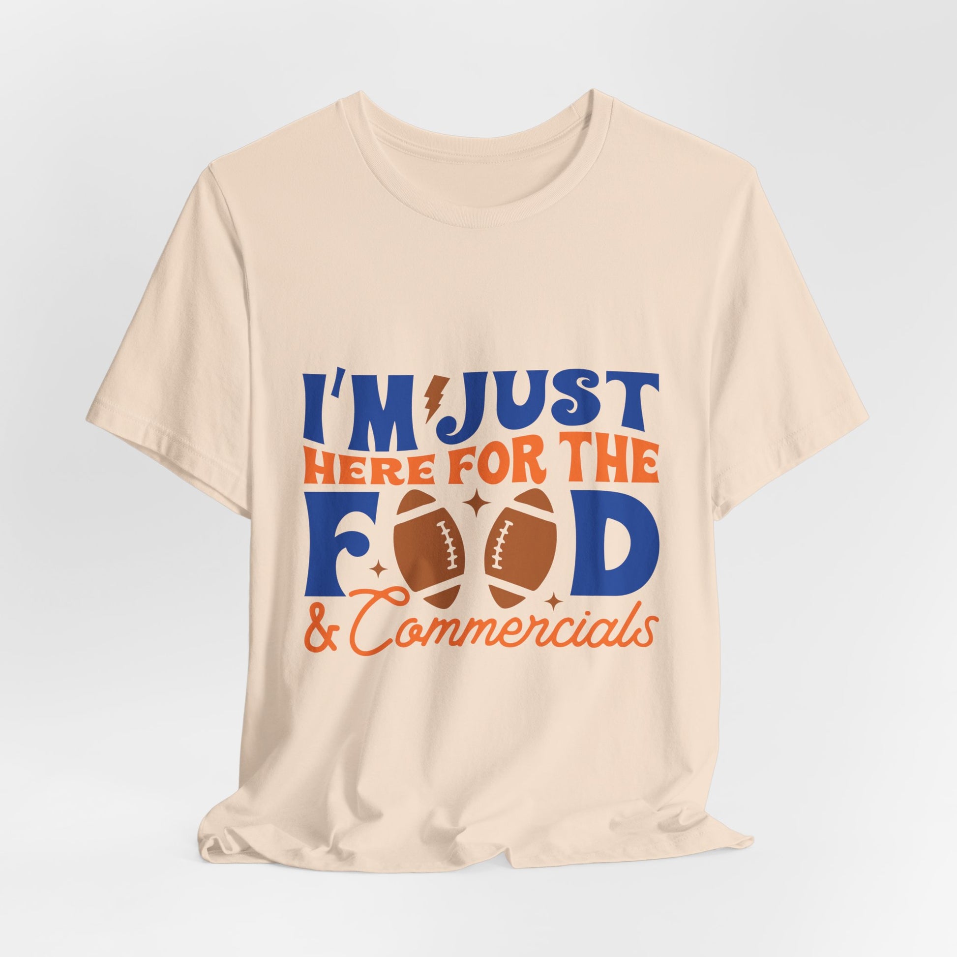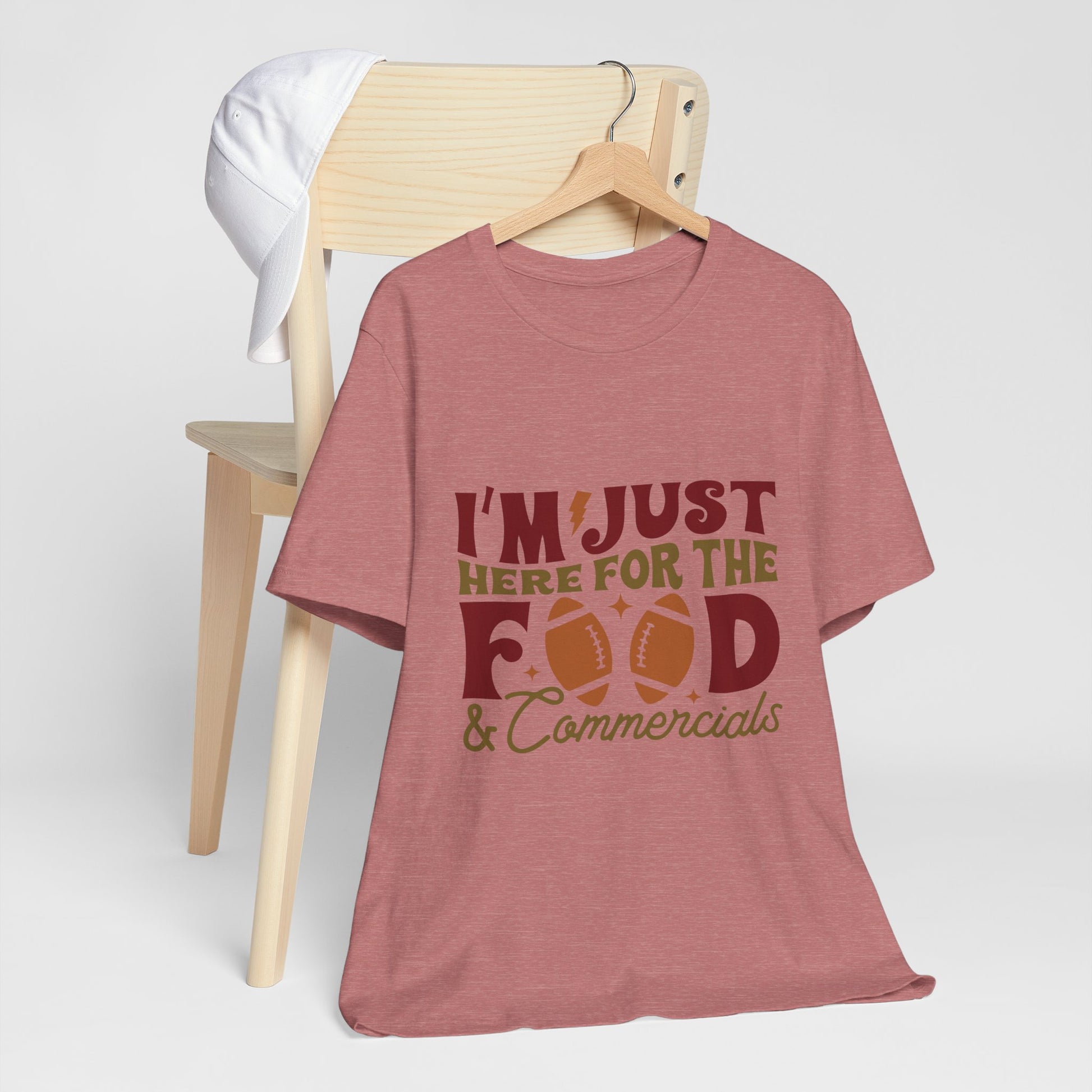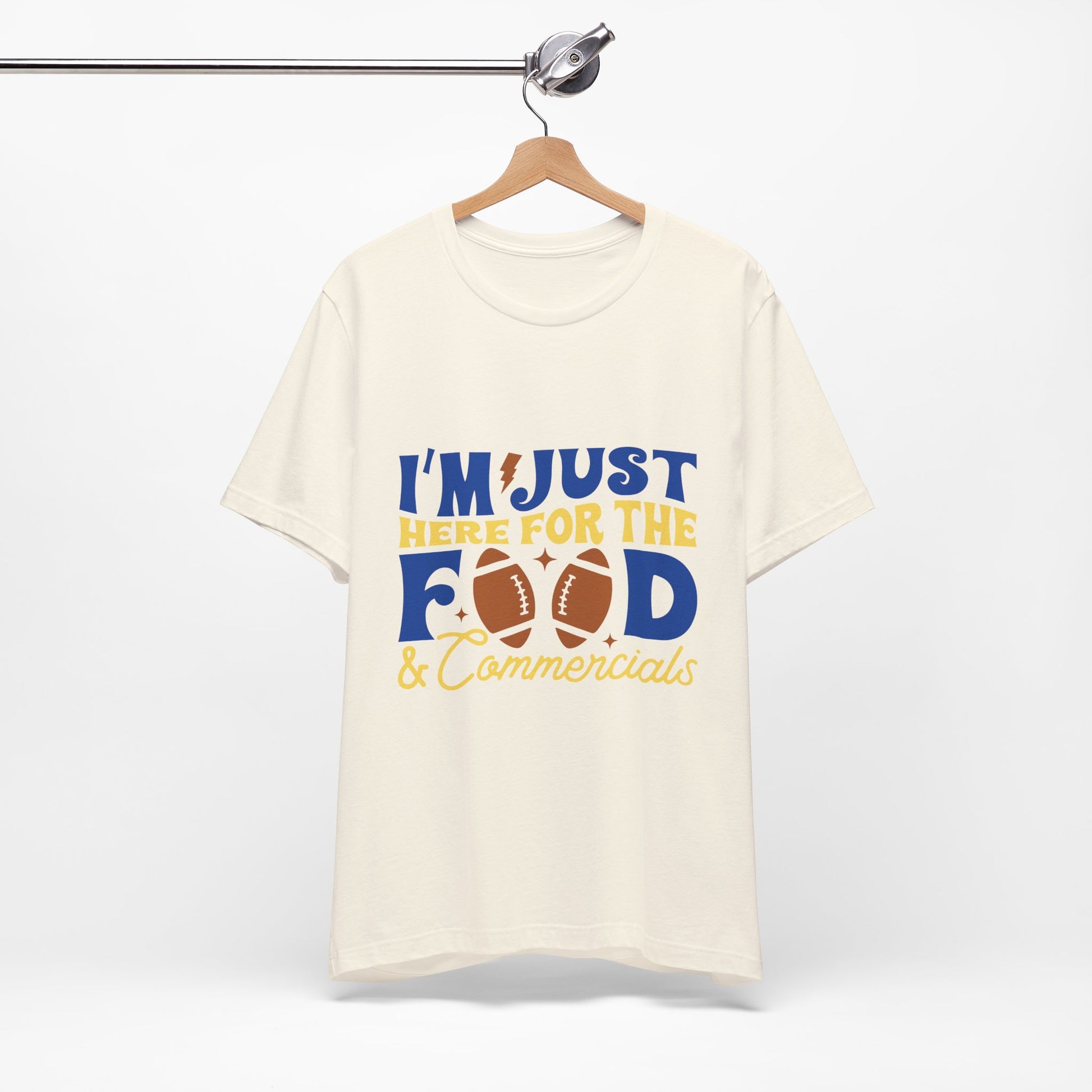 Lightweight, breathable, and built for game-day comfort—this jersey tee speaks to anyone who shows up for the snacks and halftime laughs as much as the kickoff. The playful “I’m just here for the food & commercials” design uses bold, sporty lettering and a football motif to keep the vibe casual and fun. Wear it to backyard watch parties, tailgates, or cozy living-room screenings; it layers easily under a flannel or pairs with jeans and a cap for a relaxed, effortless look. The soft Airlume combed and ring-spun cotton feels gentle on the skin and the retail fit keeps the silhouette neat without being stiff. Thoughtfully made with stable side seams, a ribbed knit collar, and shoulder tape for lasting shape, this tee looks fresh wash after wash. For people who cheer from the couch or run the grill at halftime, this shirt lets your sense of humor do the talking.